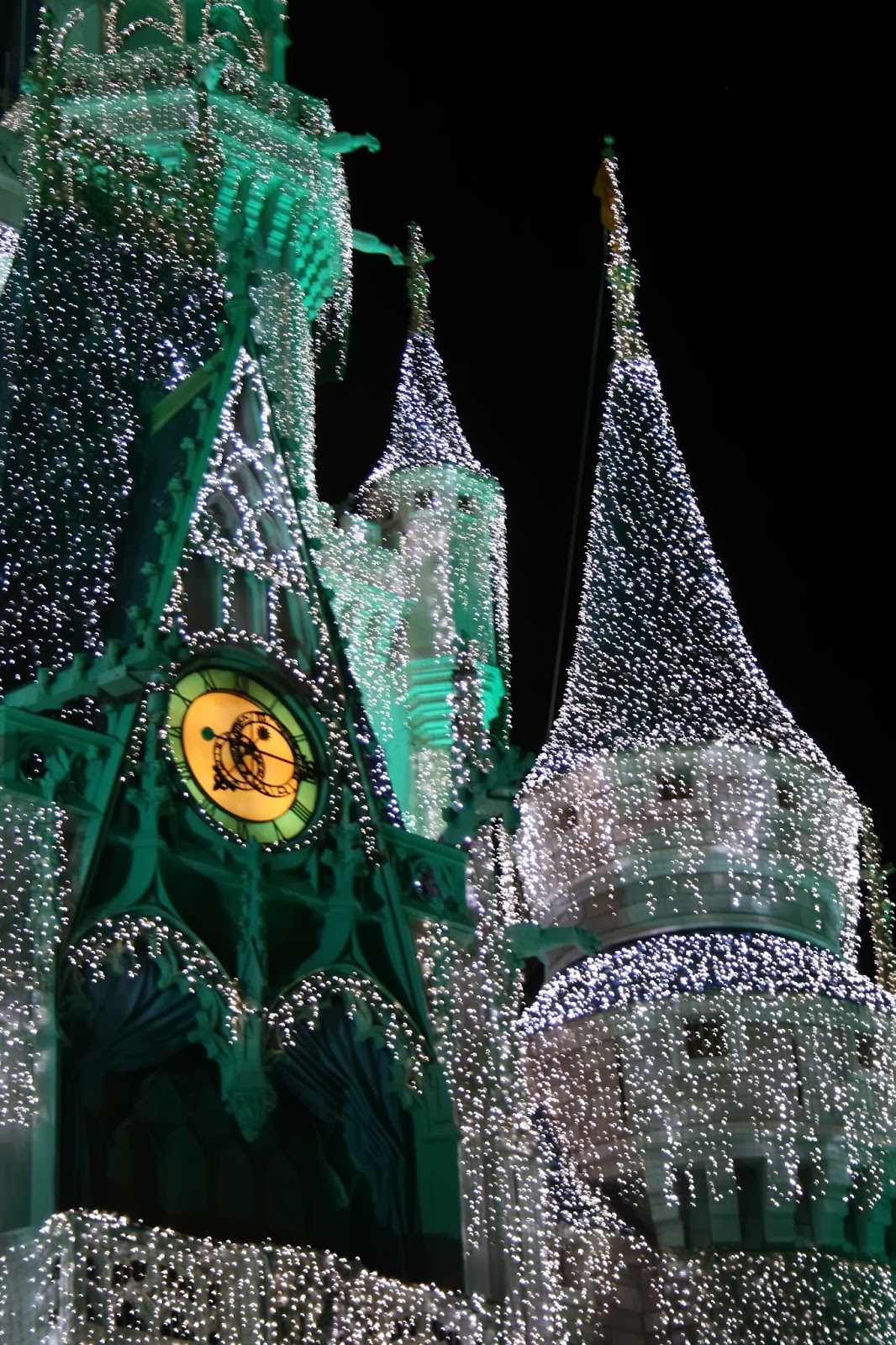Disney is always a magical place but Christmas time is even more magical. Since mom was little she always wanted to see the parks all lit up with holiday cheer. The back lot of Disney Studios has a wonderful light display that turns the whole back lot into the best lit city block in the world. Every thing was covered in lights from the buildings, light post, bikes, basketball hoops and even a tire swing brightly lit.  Snow fell on the people below as Christmas music played and mom may have teared up just a bit. It was a great way to end our first day in Disney.